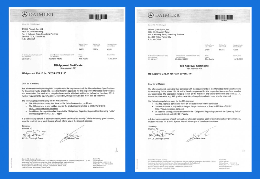 自動(dòng)變速箱油是一類(lèi)細(xì)分的傳動(dòng)類(lèi)潤(rùn)滑油,變速箱油的種類(lèi)繁多,需求量小,變速箱廠家和汽車(chē)品牌廠家只開(kāi)發(fā)針對(duì)自己箱型和車(chē)型的油品,因此變速箱油沒(méi)有全球統(tǒng)一的標(biāo)準(zhǔn),最權(quán)威的是各主要OEM廠商的標(biāo)準(zhǔn)。泰普艾擁有奔馳、通用等德系、美系的多個(gè)變速箱油認(rèn)證和認(rèn)可,是國(guó)內(nèi)為數(shù)不多的同時(shí)擁有美歐主流認(rèn)證的變速箱油品牌,并持有多項(xiàng)自動(dòng)變速箱油發(fā)明專利!
