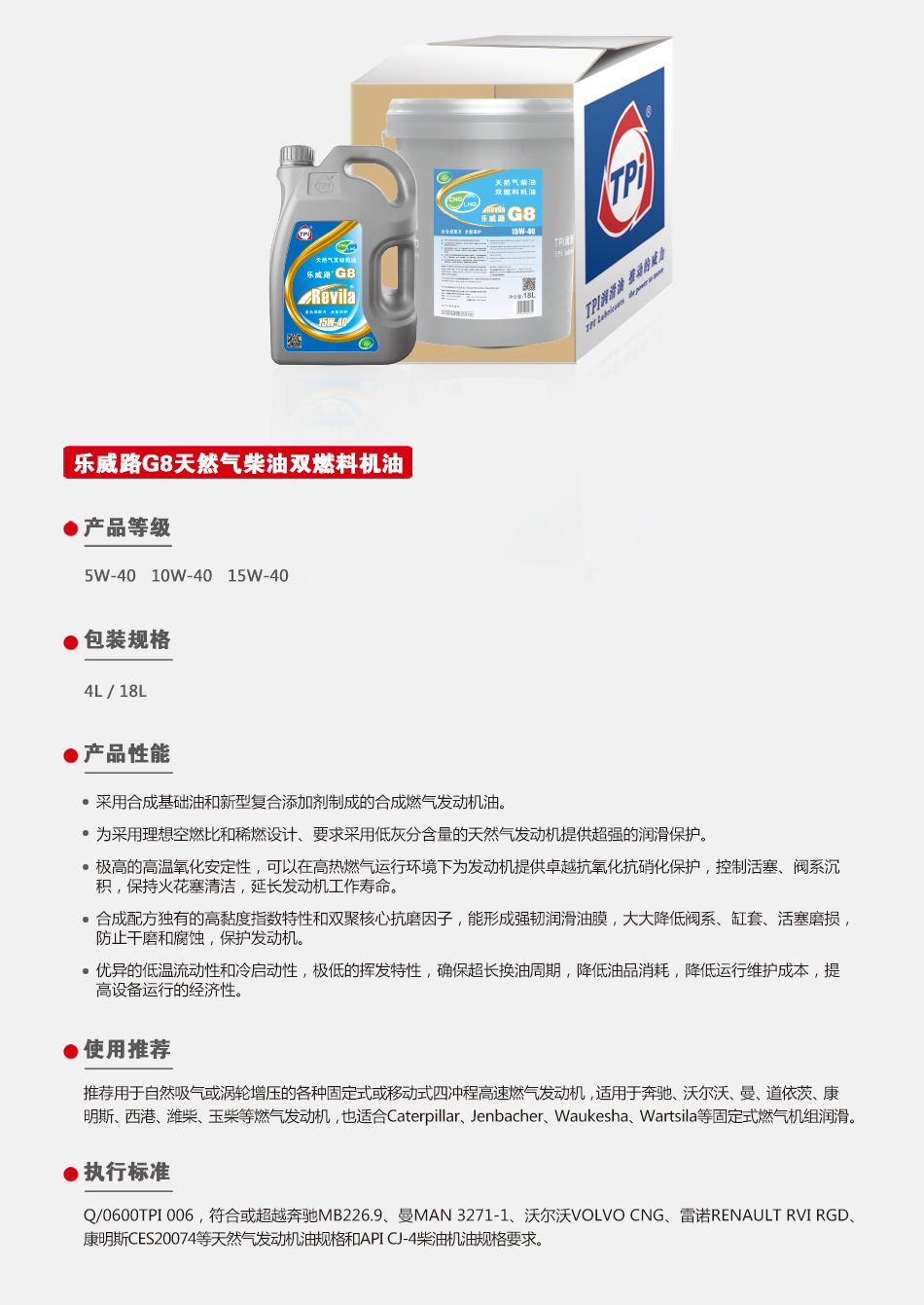 樂(lè)威路G8天然氣柴油雙燃料機(jī)油