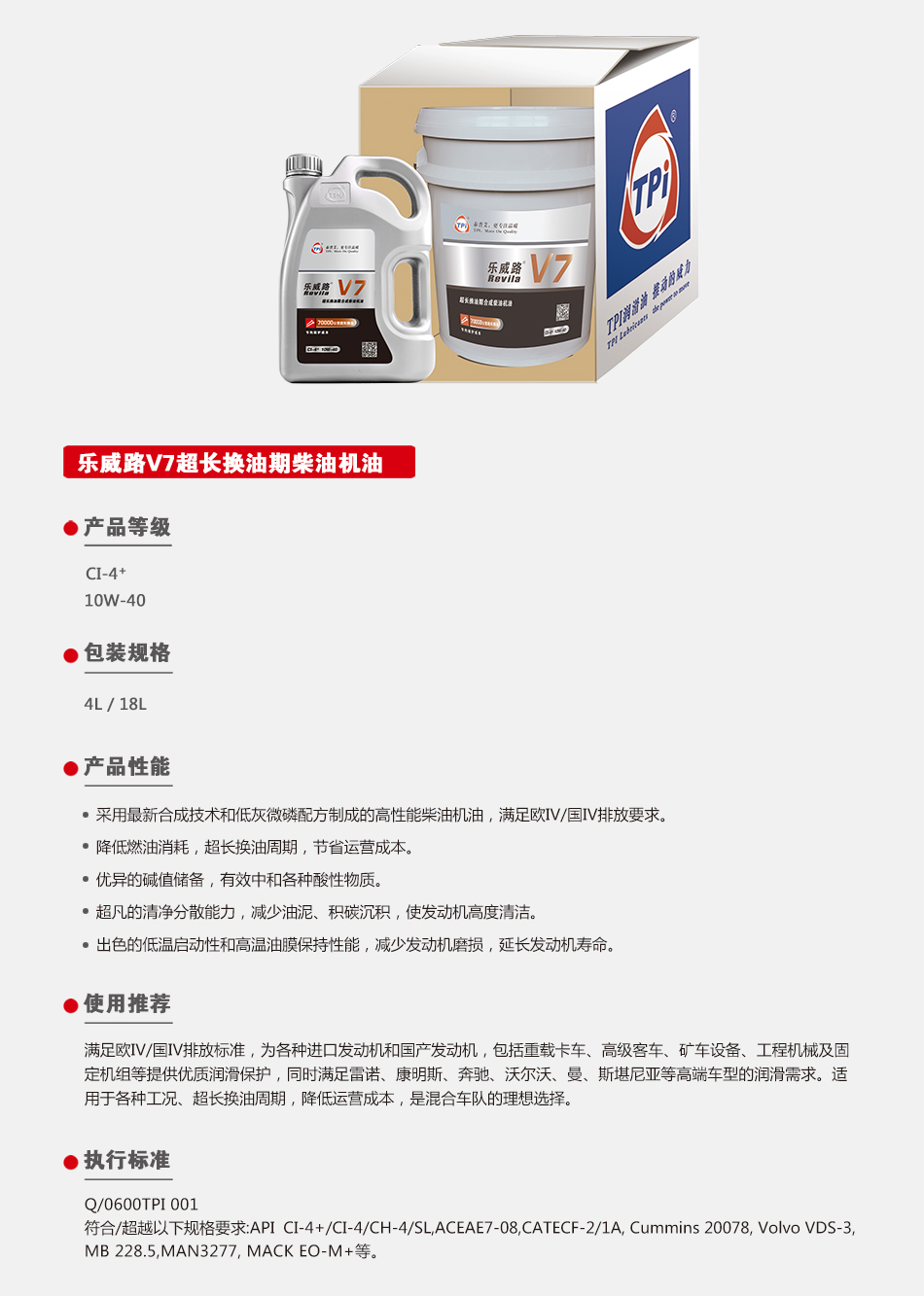 樂(lè)威路V7超長(zhǎng)換油期合成柴油機(jī)油